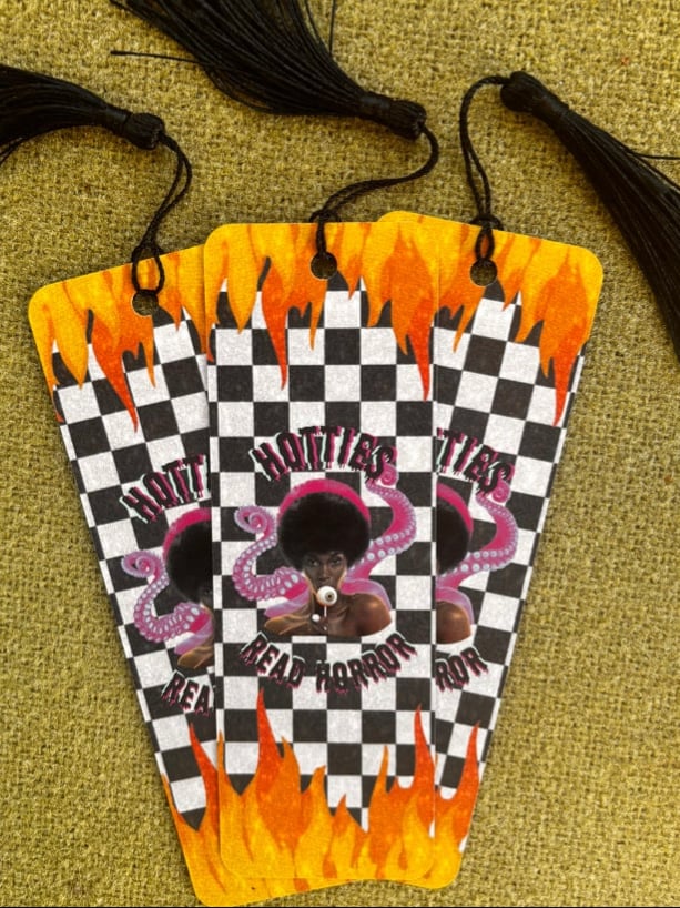 If you love reading horror then this is the perfect bookmark for you! Comes with the image of a tentacled Black horror baddie taking a lick off her eyeball lollipop. There are three total so you can share the love with some friends! Happy reading!